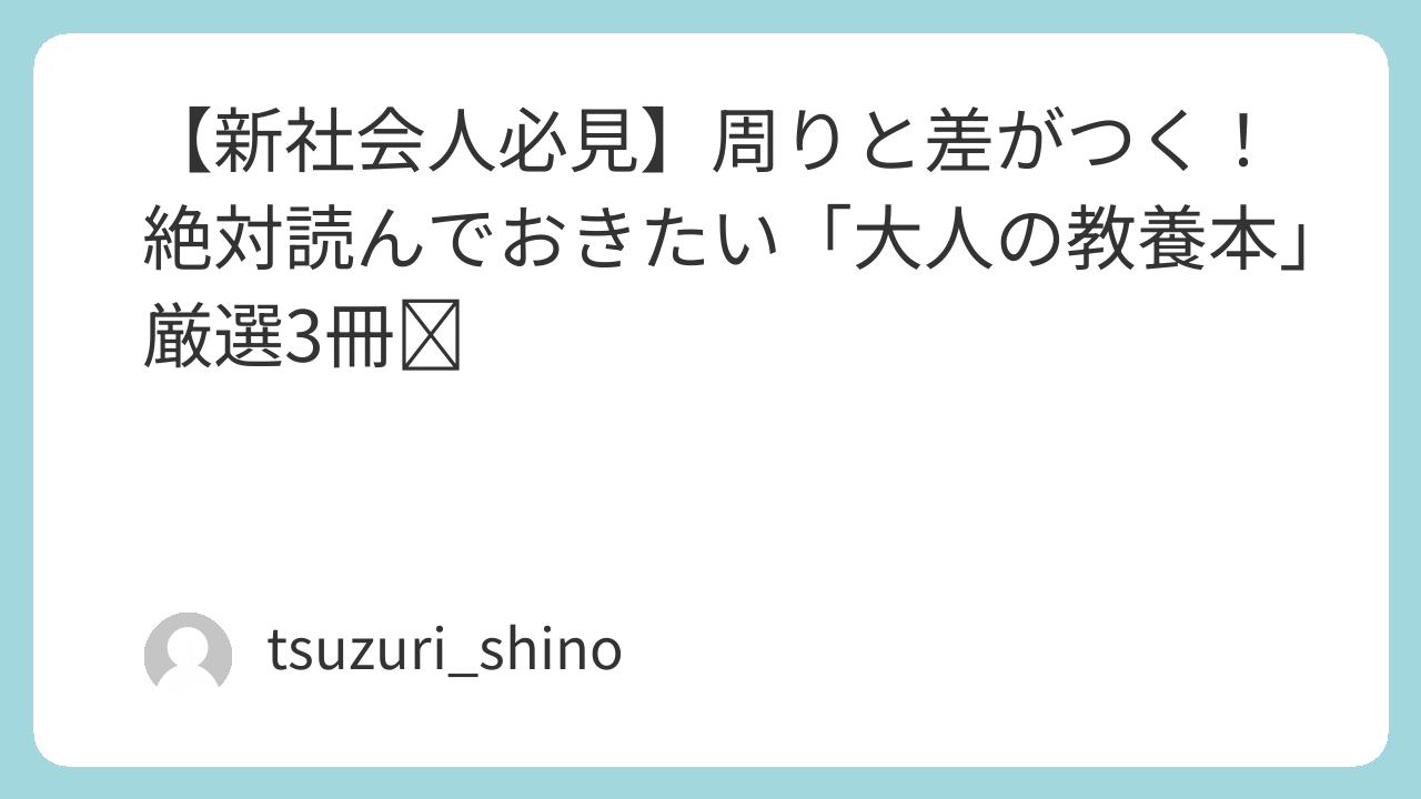 【新社会人必見】周りと差がつく!絶対読んでおきたい「大人の教養本」厳選3冊📚✨
