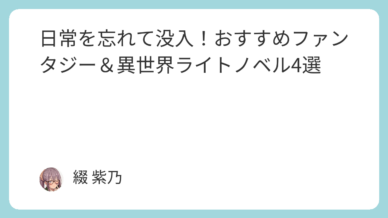 本 日常を忘れて没入!おすすめファンタジー&異世界ライトノベル4選 ※本記事はAmazonアソシエイト・プログラムに参加しています。こんな悩みありませんか?毎日仕事や家事で忙しくて、気分転換できる時間がない…。面白い小説を読みたいけれど、どれから手をつけていいかわから... 2026.04.10 本